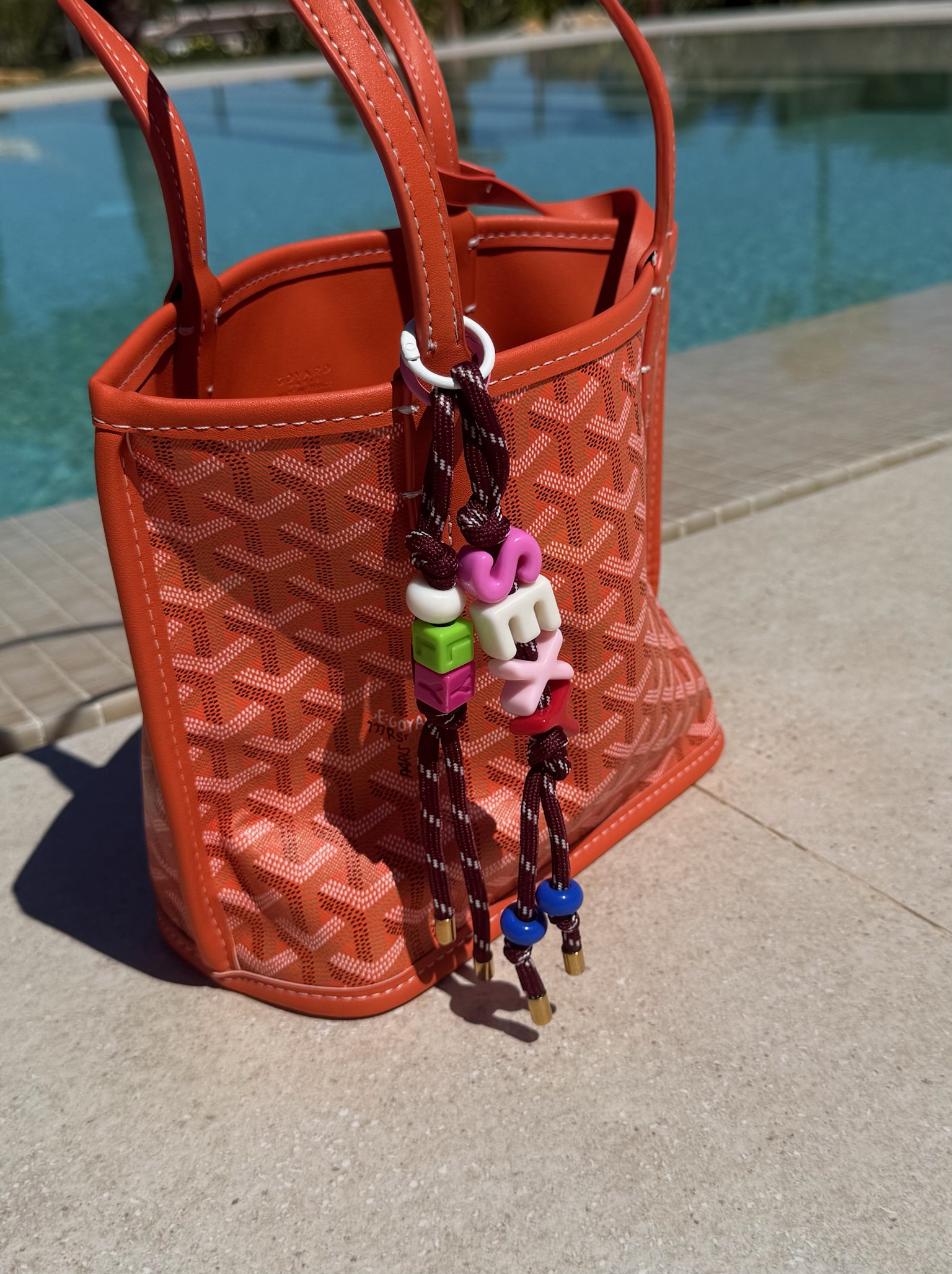 Give your bag a little joy. Our hand-beaded charms clip onto any handle, zipper pull or ring. Customisable with your word and your colour paracord.