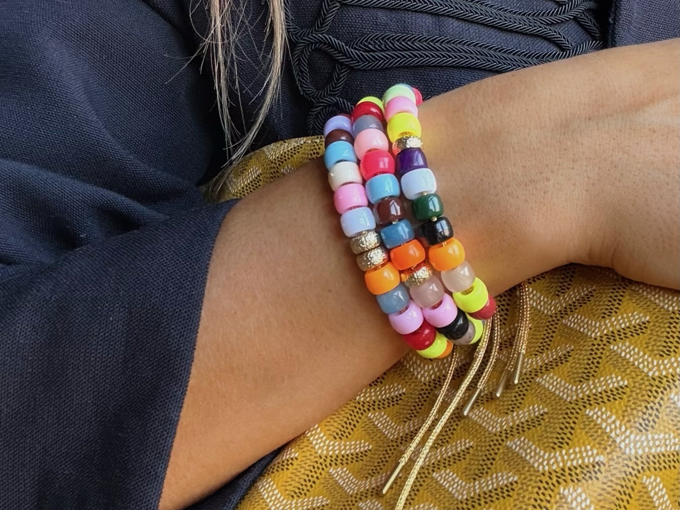 Our signature pony-bead bracelet. Hand-strung on strong stretch cord so it slips on easily and wears all day.